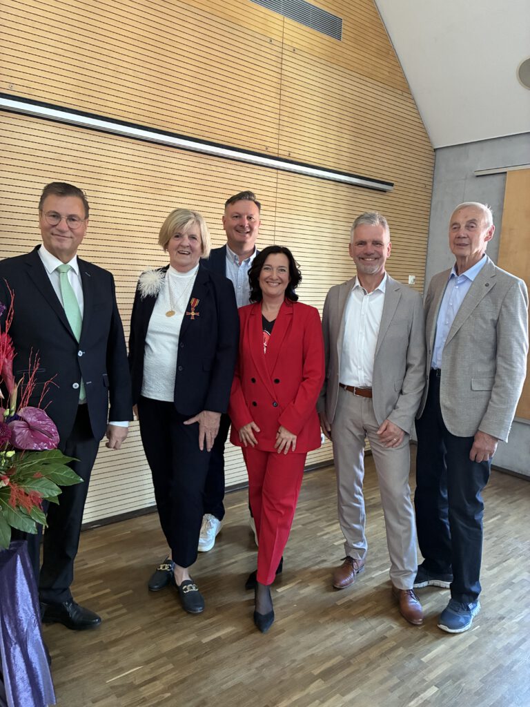 Heute wurde Barbara Schaier im Auftrag des Bundespräsidenten Hans Walter Steinmeier durch den Baden-Württembergischen Minister für Ernährung, ländlichen Raum und Verbraucherschutz, Peter Hauk, die sehr seltene Ehrung zuteil. In seiner Laudatio ging der Minister auf das Jahrzehnte lange vielfältige Wirken von unserer „Bärbel“ als Ortschaftsrätin, Gemeinderätin, Ortsvorsteherin, Ortsteilbeauftragte sowie Vereinsmitarbeiterin. Auch Bürgermeisterin Nicola Bodner fand im Beisein der ebenfalls geladenen Gemeinderäte Markus Rendes, Andreas Gutgesell sowie Alt-Gemeinderat Alfred Fleißner lobende Worte für das außergewöhnliche langjährige Engagement von Barbara Schaier.